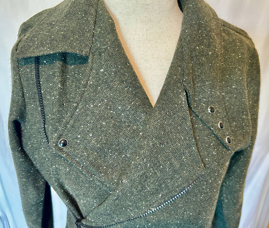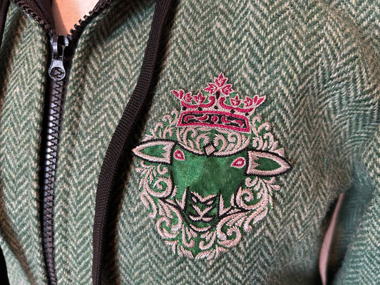 Allium Jacket in Green Herringbone Harris Tweed with Sheep King Embroidery